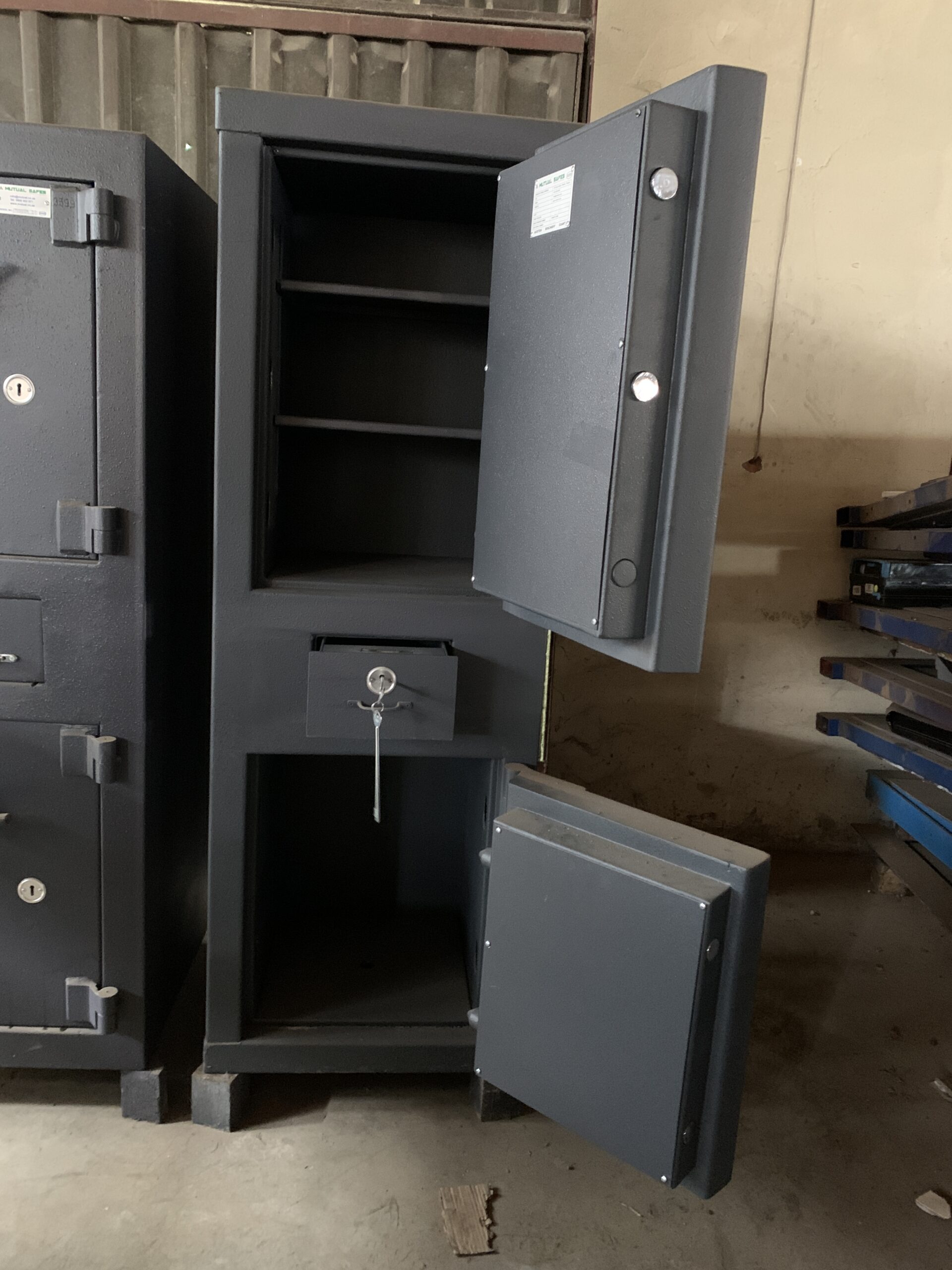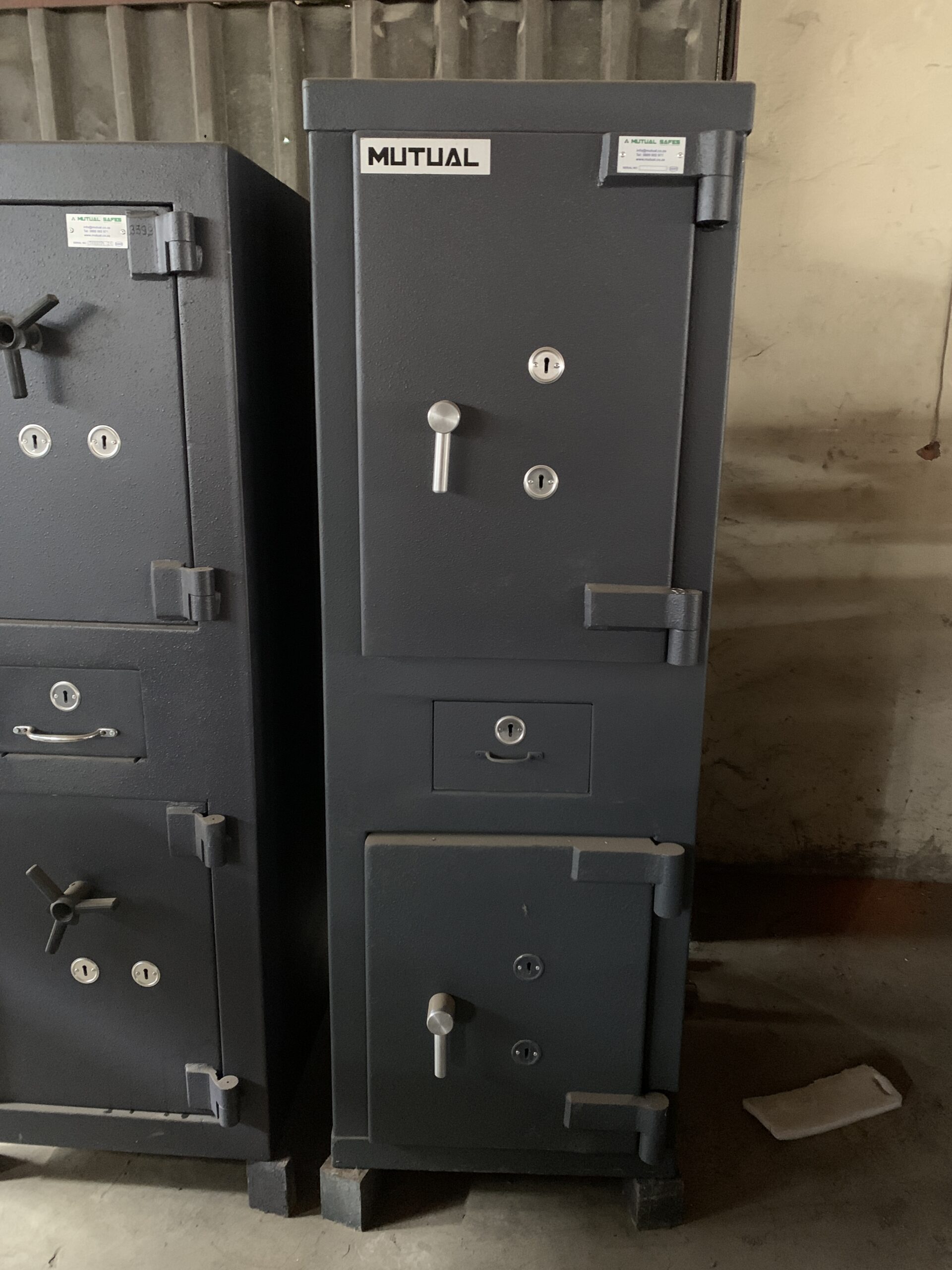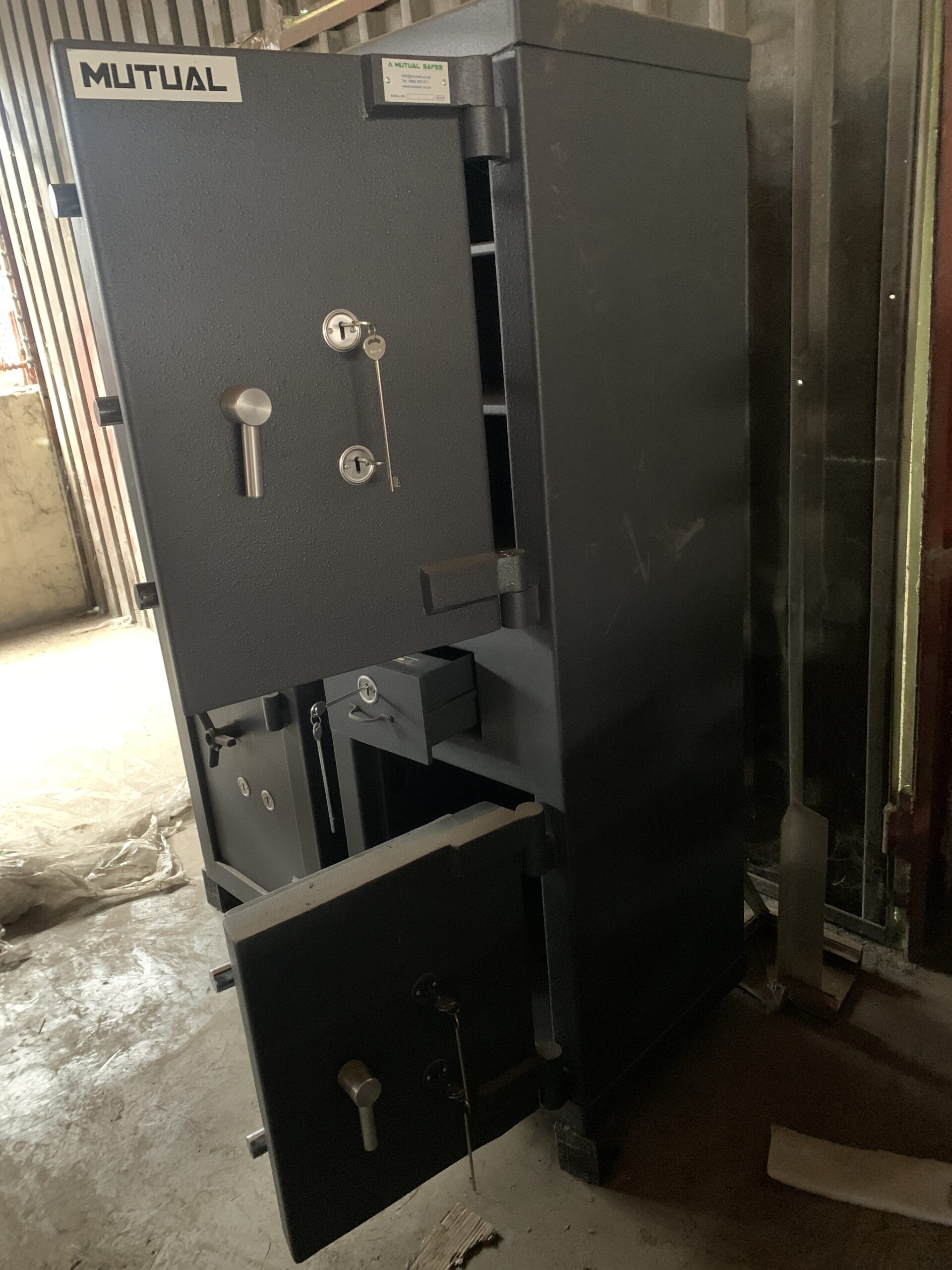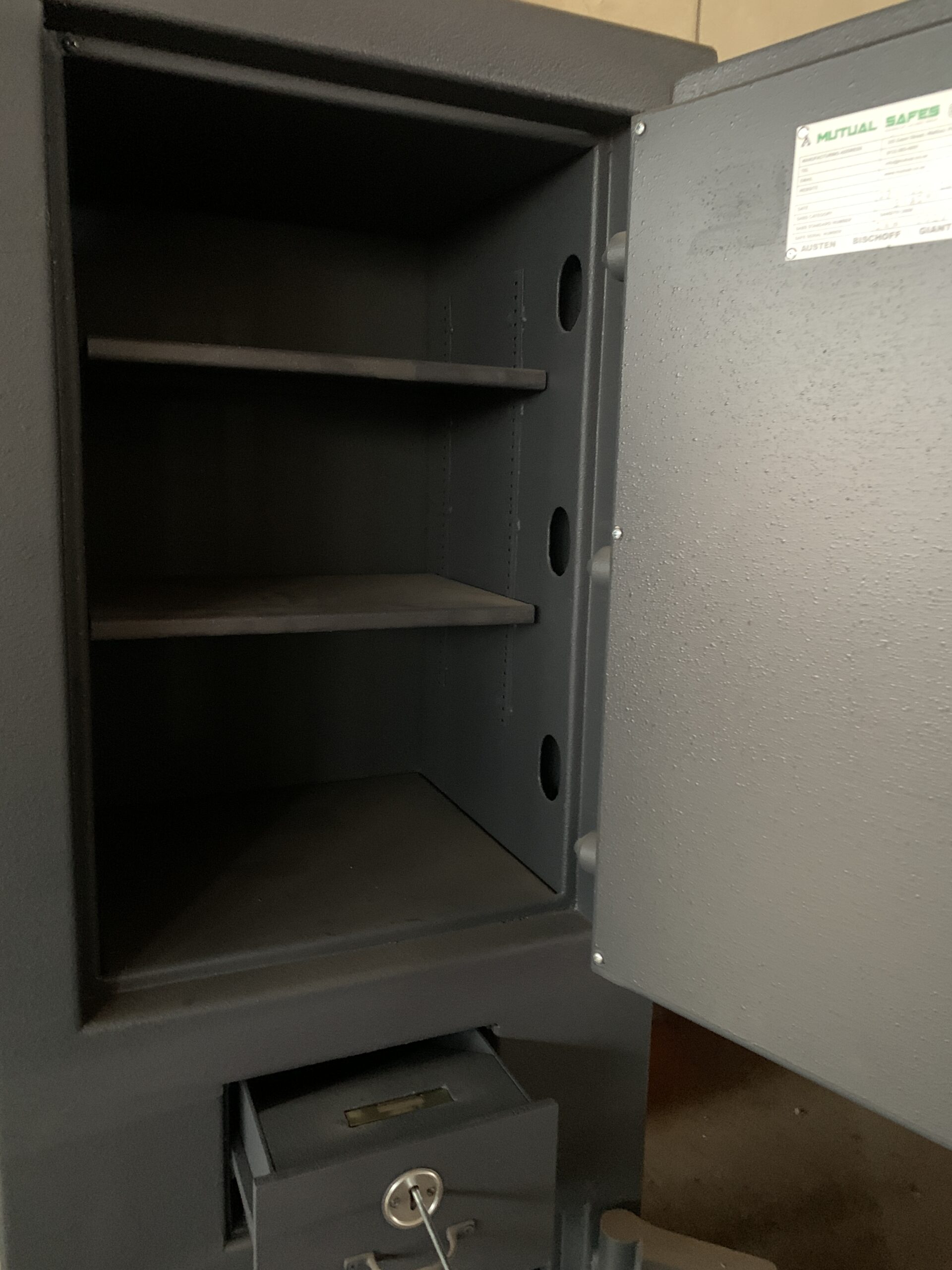 The Safe Warehouse is selling this CAT2 ADM DP 85/65 Drop Safe Combo. Dimensions: 560mm x 16010mm x 510mm This is a refurbished Safe (a used safe) and thus does not come with a Guarantee. All our Refurbished safes are sold as is. It has all its keys and if fully functioning. Delivery and installation can be arranged with our Logistical partner or collection in our warehouse in Waltloo, Pretoria is also an option. We have a forklift to assist. [Delivery and Installation are separate costs.]
